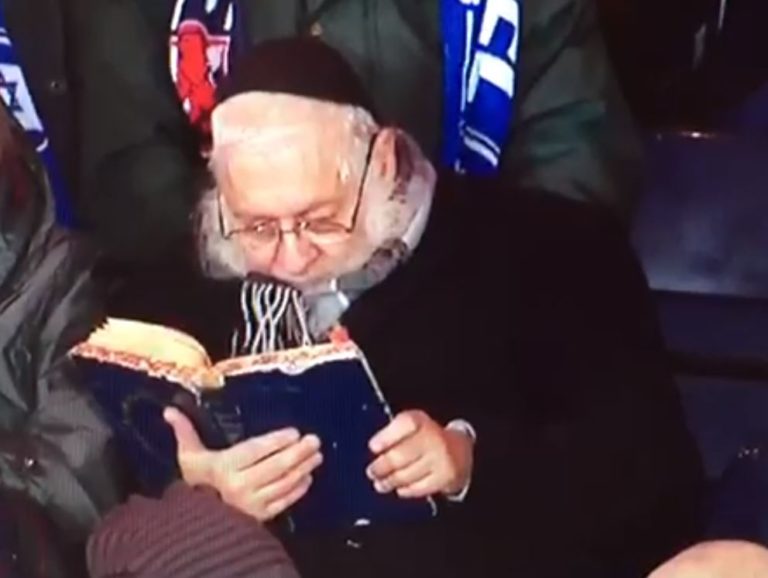 TV cameras spotted an unusual sight during the Israel vs Scotland soccer match on Tuesday night. A Rabbi appeared to be reading a “book”, completely oblivious to the excitement going