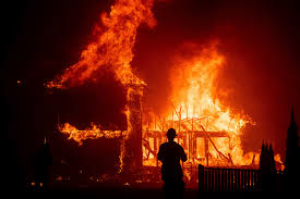 A fast-moving wildfire that ravaged a Northern California town Thursday sent residents racing to escape on roads that turned into tunnels of fire as thick smoke darkened the daytime sky.