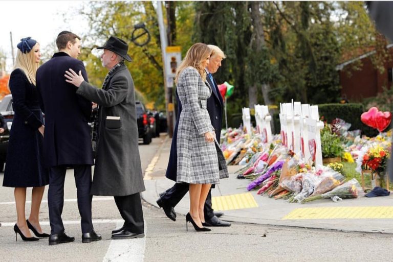 President Donald Trump and First Lady Melania Trump met with doctors, nurses and victims of the synagogue massacre at UPMC Presbyterian hospital in Pittsburgh on Tuesday evening. Joined by his