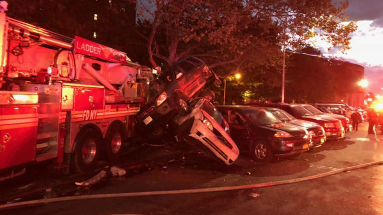 A firefighter suffered a seizure behind the wheel — sending an FDNY firetruck crashing into several cars parked in Brooklyn on Wednesday evening. The accident happened just after 6:00PM at