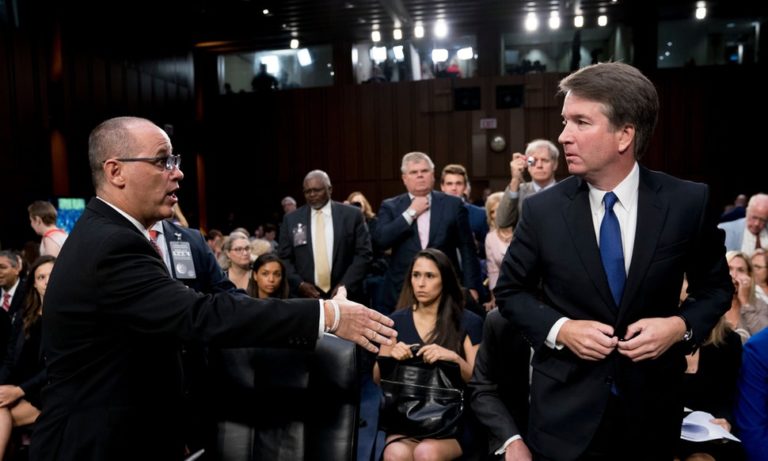 Supreme Court nominee Brett Kavanaugh declared fervently at his Senate confirmation hearing Tuesday the court “must never, never be viewed as a partisan institution.” But that was at the end