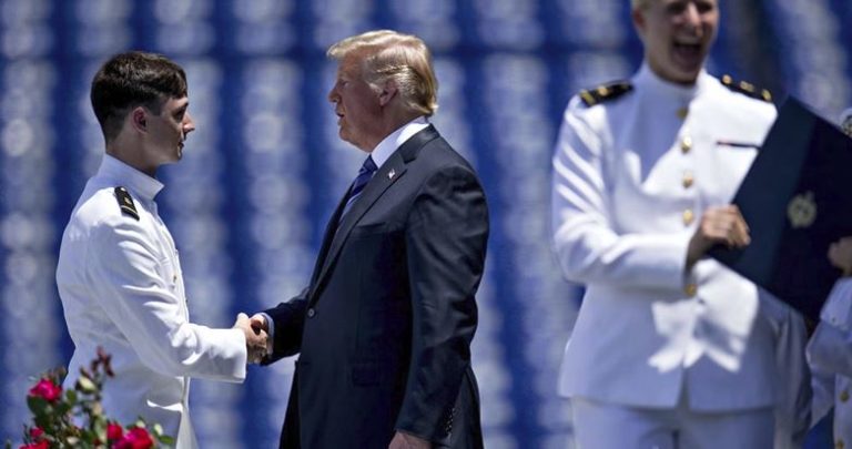President Trump went off-script once-again during his commencement address at the US Naval Academy in Maryland Friday; scrapping his plans to leave after his remarks and vowing to stay “for