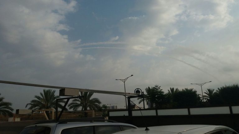 Sirens sounded throughout Gaza border communities on Tuesday morning, at 6:59AM sending tens of thousands of Israelis running to bomb shelters. At least 25 rockets from Gaza were detected. School