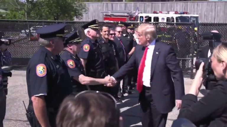 As he was preparing to depart Bethpage, New York on Wednesday, President Donald Trump sprinted away from his security detail and waiting Marine One helicopter to thank a group of