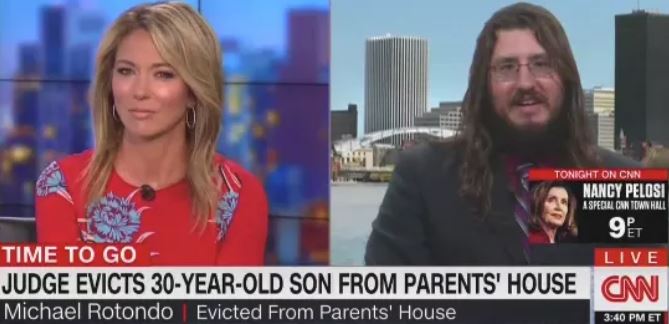 Michael Rotondo, the 30-year-old man from upstate New York who is battling his parents’ legal orders to evict him from their house, appeared on CNN on Wednesday, where host Brooke