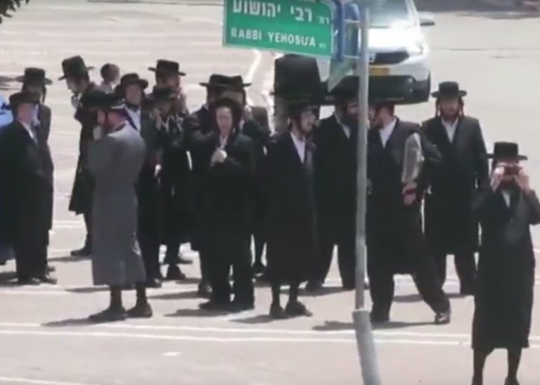 (VIDEO IN EXTENDED ARTICLE) A number of sikrikim on Sunday morning, 14 Iyar, protested outside the Beis Medrash Vishnitz Monsey in Beit Shemesh because Deputy Education Minister Meir Porush was