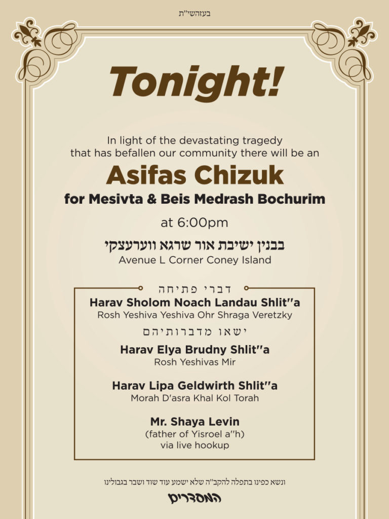 The young man killed when a minivan flipped over early Friday morning, 28 Nissan, near Morasha Interchange has been identified as Chaim Dov Alter Z”L, 18, a son of a