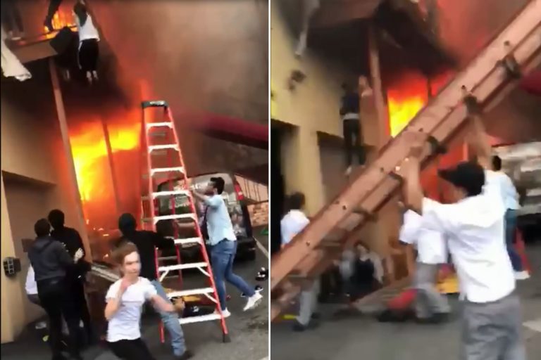 (VIDEOS IN EXTENDED ARTICLE) Authorities in New Jersey say several girls jumped from a balcony to escape a fire at a dance studio. The fire happened around 7 p.m. Monday