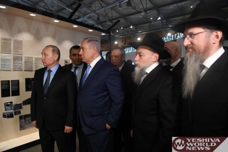(VIDEOS & PHOTOS IN EXTENDED ARTICLE) Russian President Vladimir Putin and Israeli Prime Minister Benjamin Netanyahu on Monday visited an exhibition “Sobibor: Victorious over Death” that opened at the Jewish