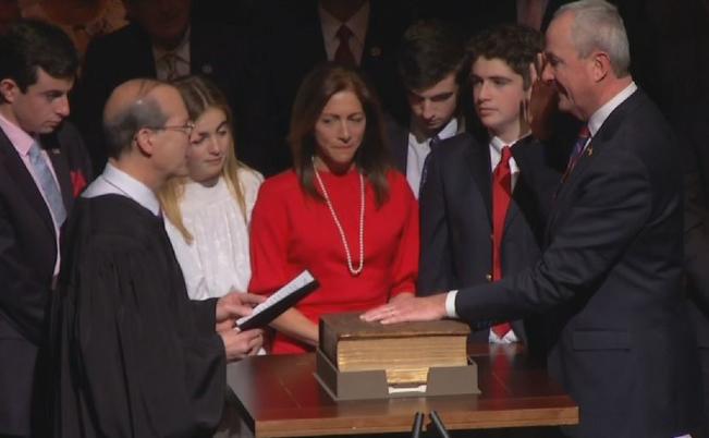 (VIDEOS IN EXTENDED ARTICLE) Former Wall Street executive Phil Murphy succeeded Chris Christie as governor on Tuesday, swearing his oath on the Bible President John F. Kennedy used in 1961