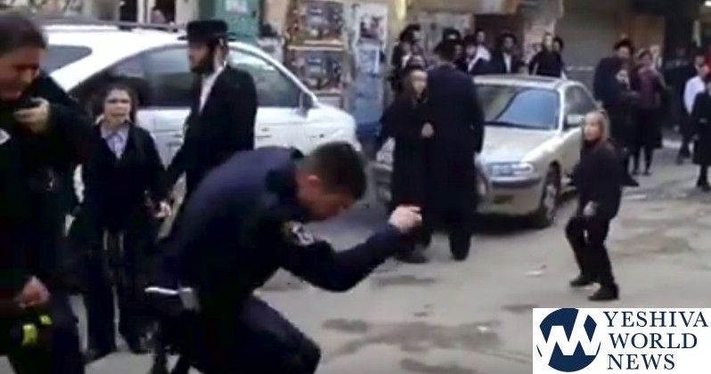 Police were responding to a report of a family dispute which may have resulted in violence. A male and female officer were dispatched and walked into the Meah Shearim Shuk. They were immediately greeted with bottles, rocks and diapers being thrown at them. As is customary in Meah Shearim, the children joined in the welcoming of the officers by screaming “Nazi” at them.