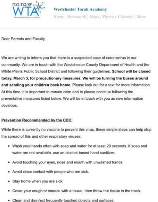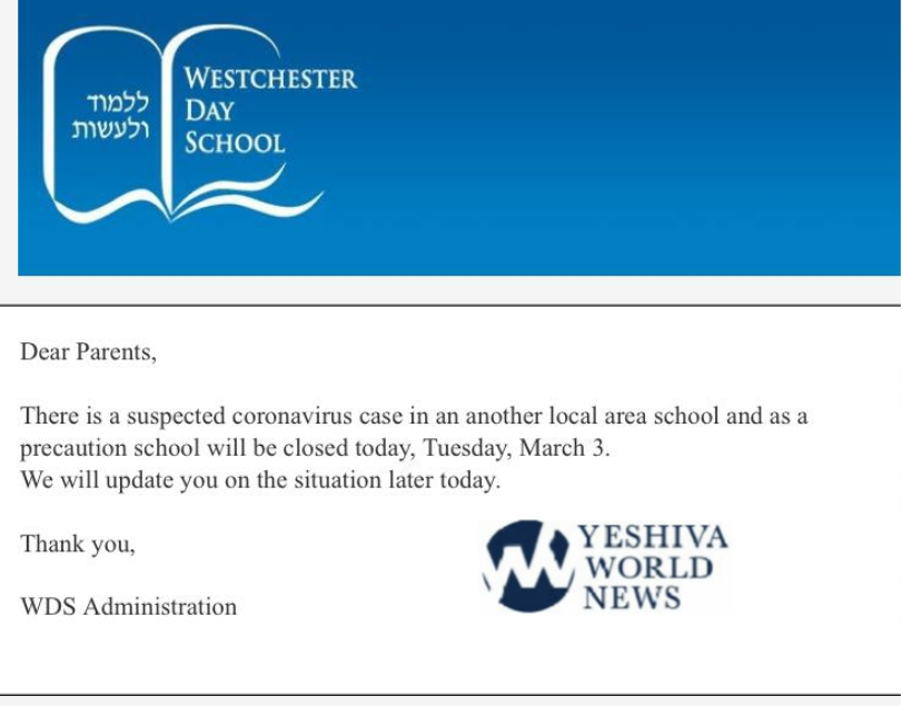 Two additional Jewish schools then sent out emails announcing the closures, both of them located in Westchester County: Westchester Day School and Westchester Torah Academy.
