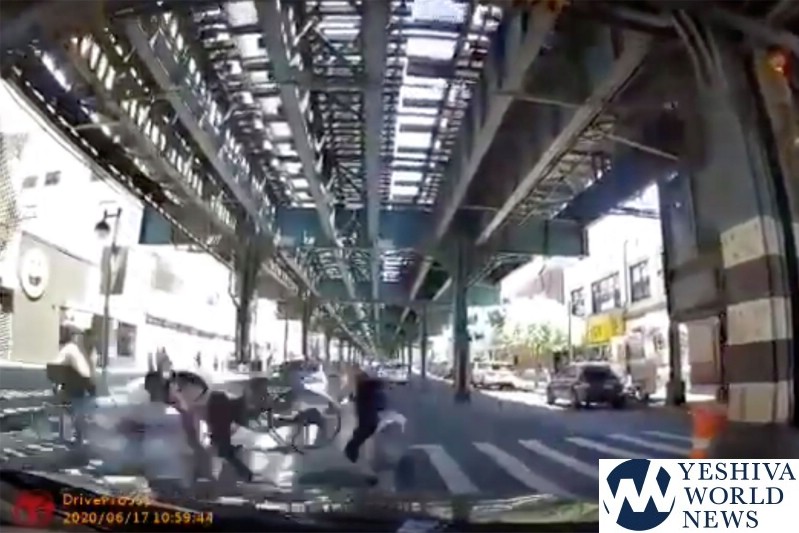 Shocking dashcam video shows the moment a car plowed through pedestrians at a Bronx intersection on Wednesday before crashing onto a sidewalk.