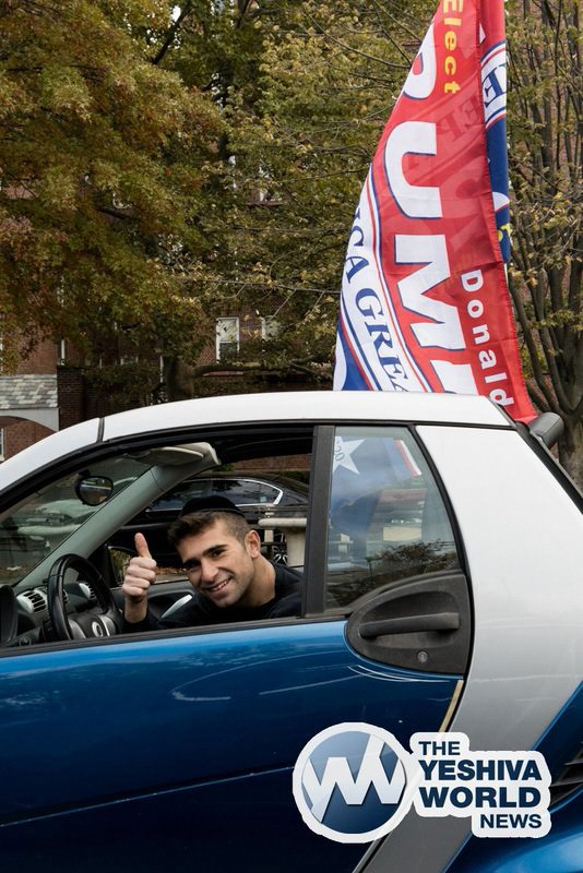 Boris Epshteyn, an adviser to the Trump campaign and co-chair of Jewish Voices for Trump, organized Sunday’s rally in Brooklyn’s Marine Park at the end of the car parade. He was one of the speakers, as well as former NYS Assemblyman Dov Hikind, a life-long Democrat.