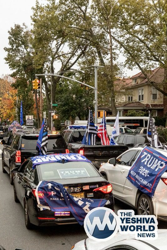Well over a thousand vehicles were part of the #JewsForTrump” convoy on Sunday, all draped with American flags and Trump 2020 banners, as they rolled slowly through Manhattan and Brooklyn on Sunday afternoon. One large convoy of hundreds of vehicles left Rockland County and met up with the NYC convoys.