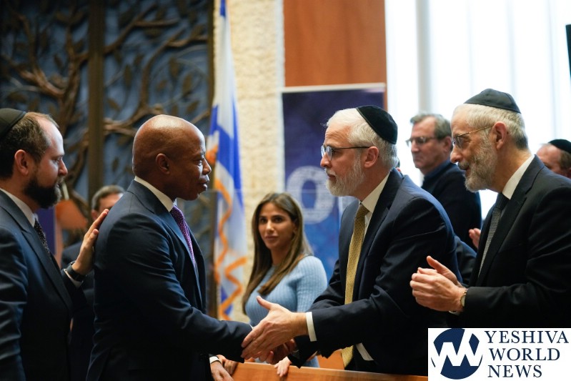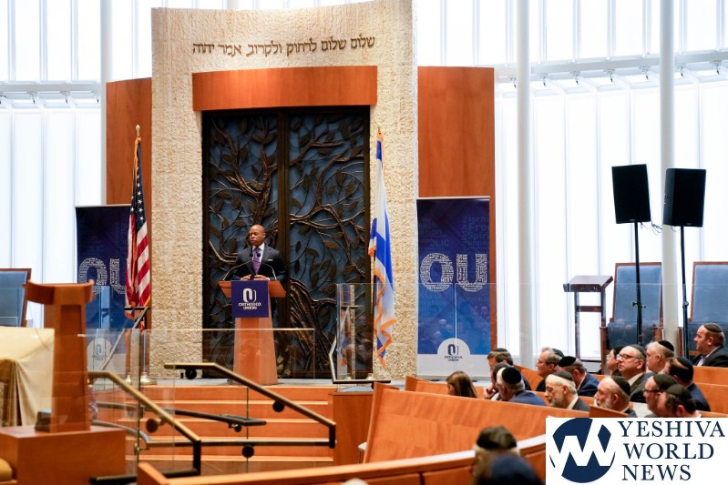 The event was held at the Lincoln Square Synagogue on the Upper West Side. In attendance were leaders of the Orthodox Jewish community’s synagogues, schools, and other communal institutions, as well as senior government officials. Homeland Security Secretary Alejandro N. Mayorkas, Senator Chuck Schumer, New York Gov. Kathy Hochul, and New York City Mayor Eric Adams addressed the attendees.