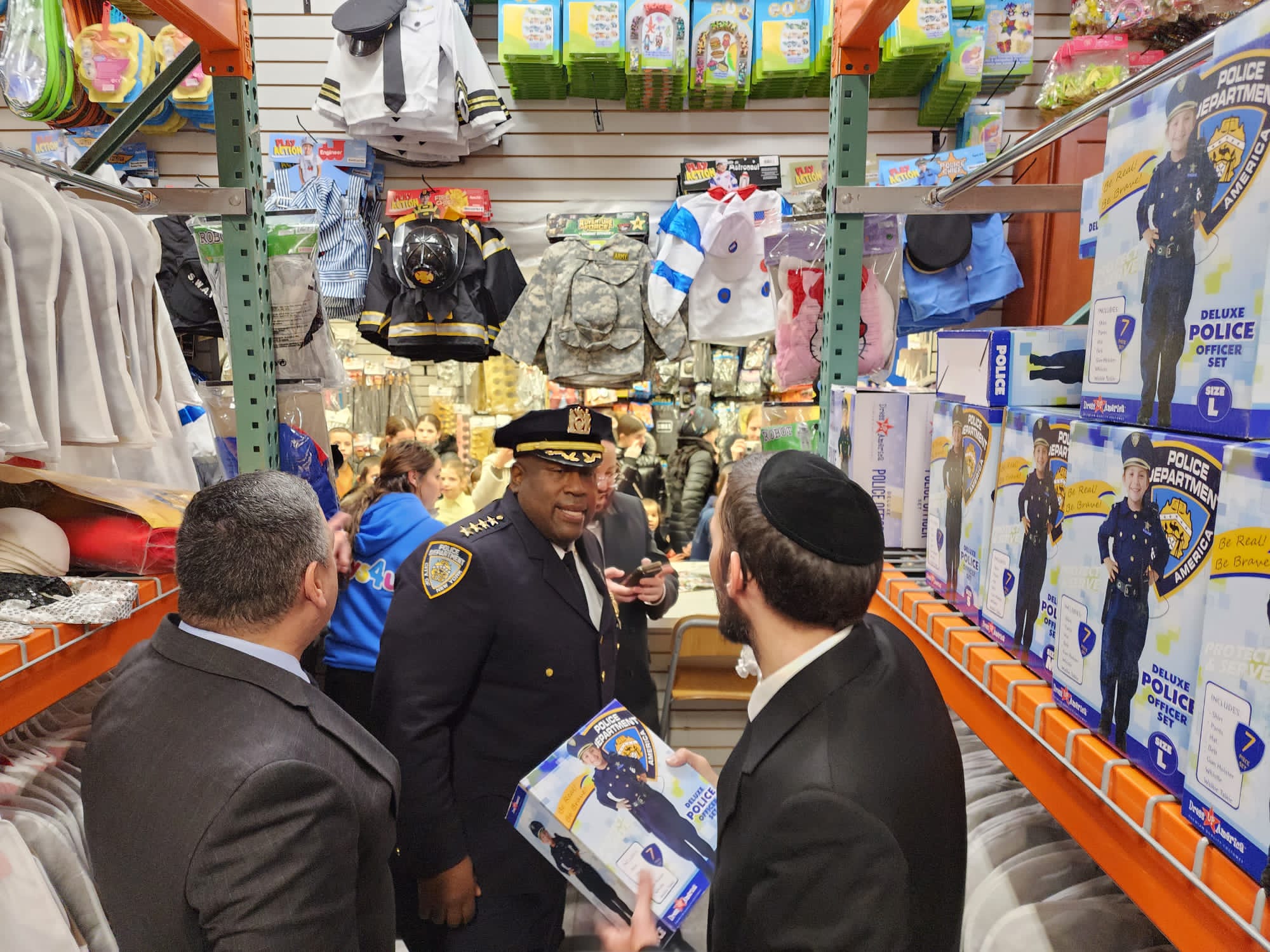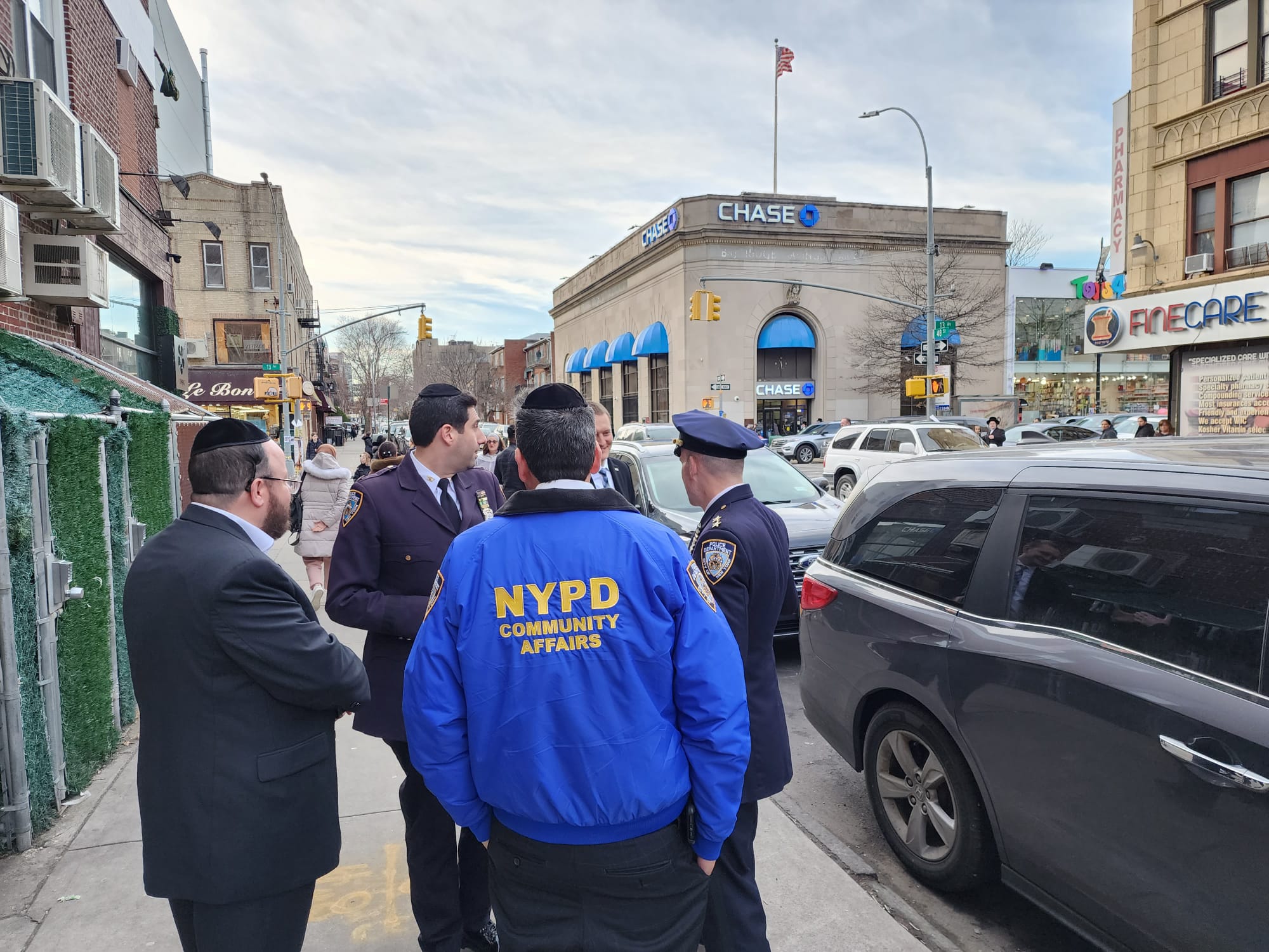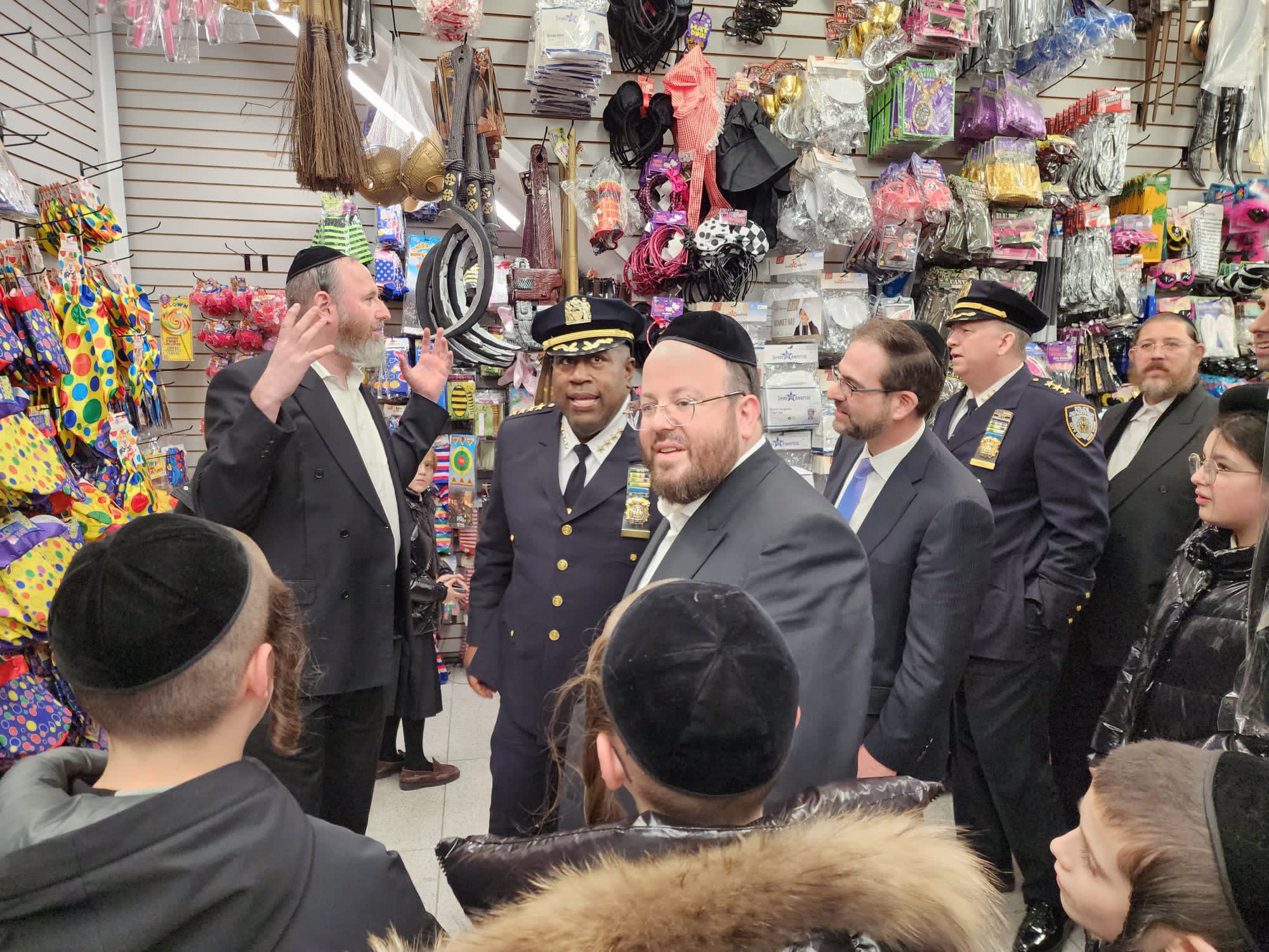 The Mayor’s Office, NYPD Top Brass, elected officials, Hatzolah, Shomrim and community leaders met at Assemblyman Simcha Eichenstein’s Office on Thursday and walked the streets of Boro Park to assure the community that Purim will be safe.