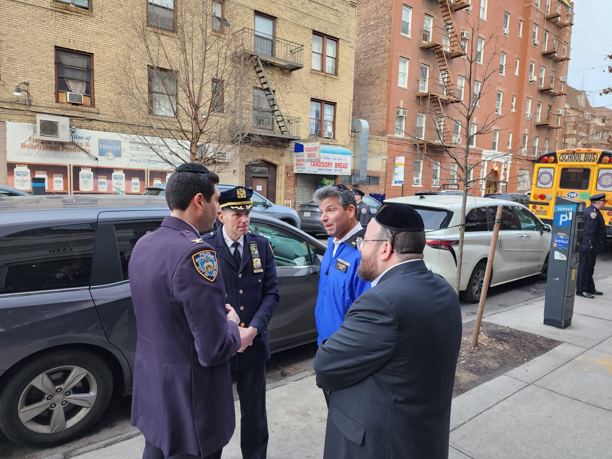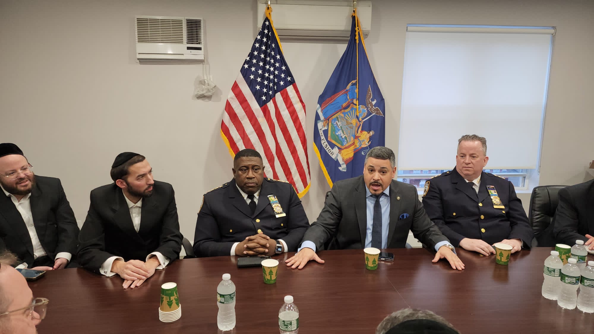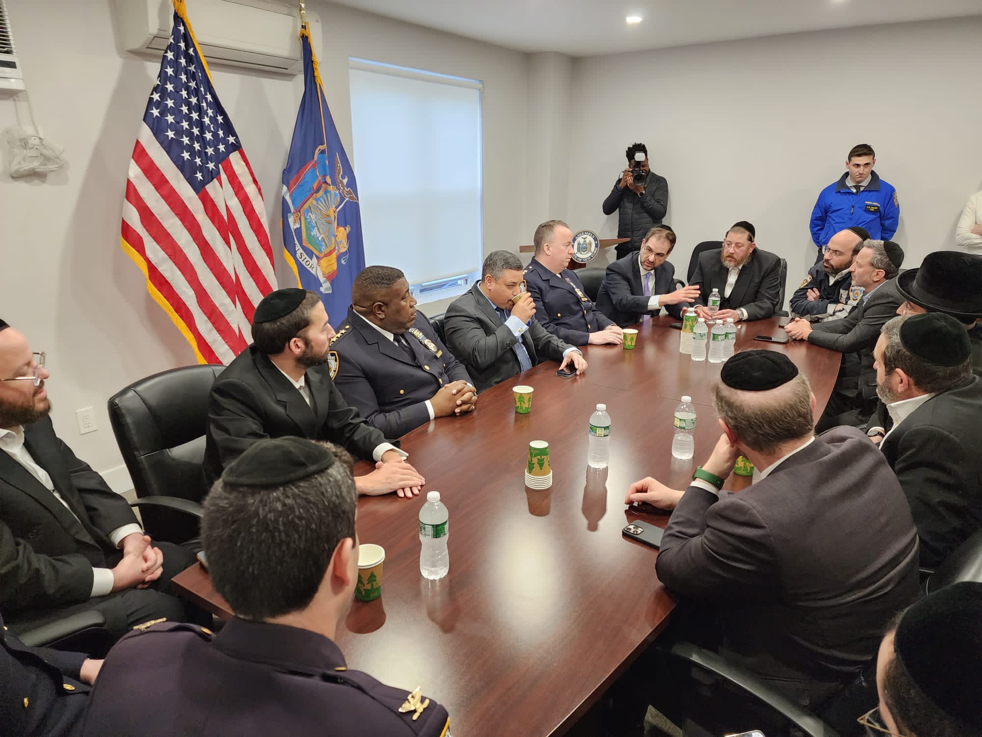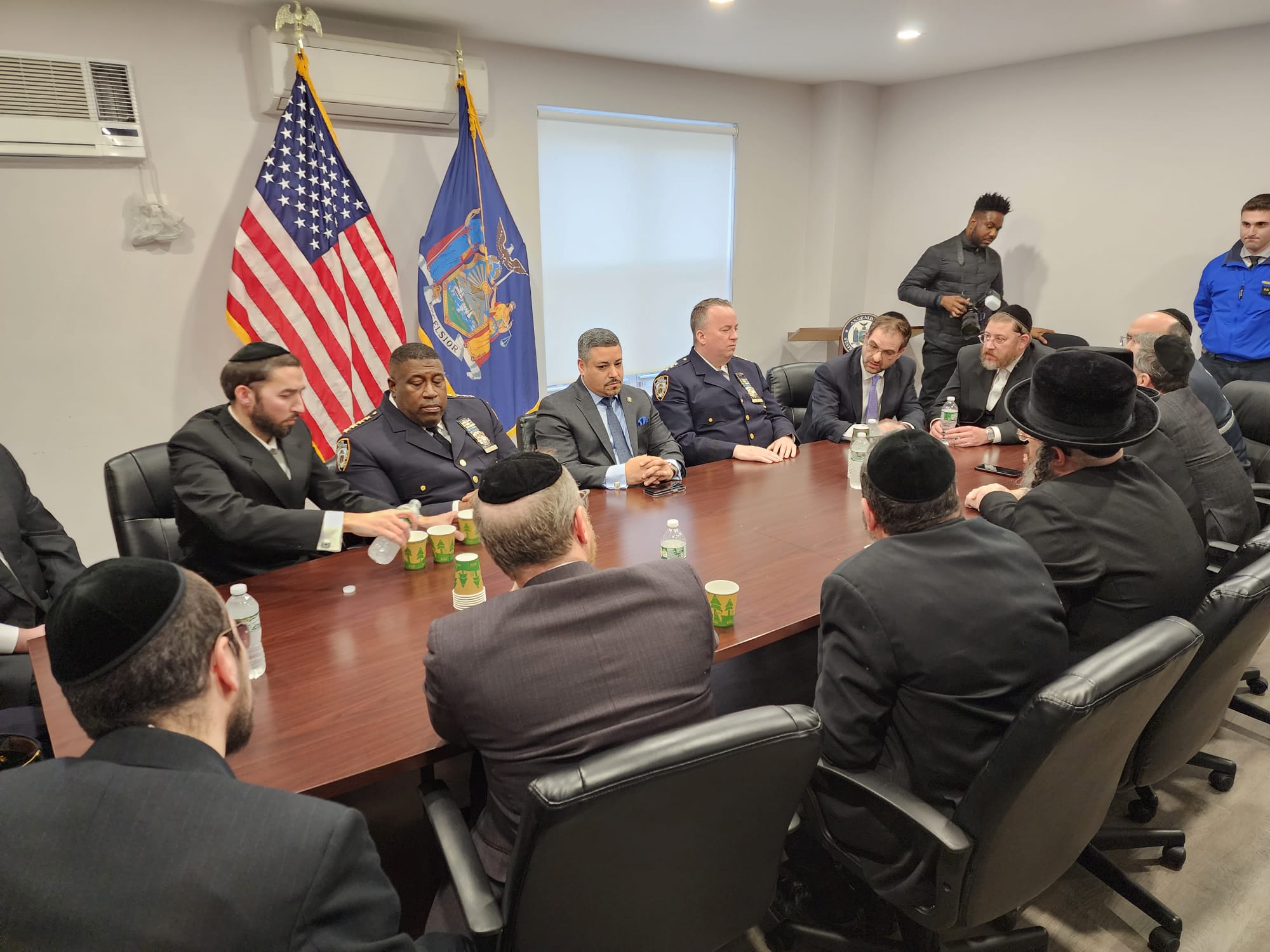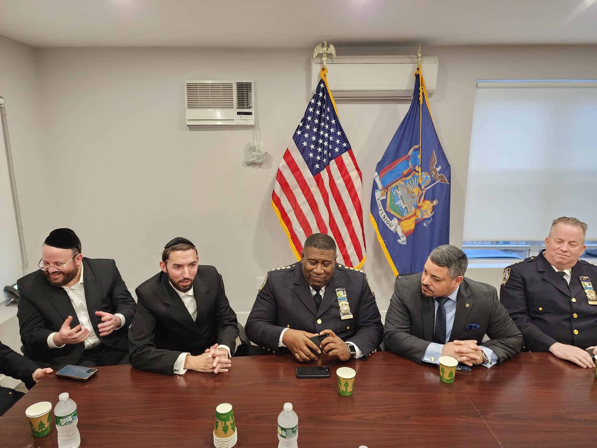 Attendees included NYPD First Deputy Police Commissioner Edward Caban, Senior Advisor to Mayor Eric Adams Joel Eisdorfer, NYPD Chief of Department Jeffrey Maddrey, NYPD Chief of Patrol John Chell, Commanding Officer of Patrol Borough Brooklyn South Assistant Chief Charles McEvoy, Commanding Officer of Community Affairs Inspector Richie Taylor, 66th Precinct Commanding Officer Deputy Inspector Jason Hagestad, Community Affairs Lieutenant Yitzy Jablonsky, Assemblyman Simcha Eichenstein, Councilman Kalman Yeger, Jacob Eisdorfer, Community Liaison to Brooklyn Borough President Antonio Reynoso, Yechiel Kalish, CEO of Chevra Hatzolah, Barry Spitzer, District Manager of Community Board 12, Motty Fleischer Boro Park Hatzolah Administrator, Aharon Yitzchok Kohn Boro Park Chaveirim Coordinator, Meyer Weill, Misaskim President, Duddy Kornhouser, Coordinator of Chesed Shel Emes, Boro Park Shomrim Coordinators Motty Katz and Motty Brauner.