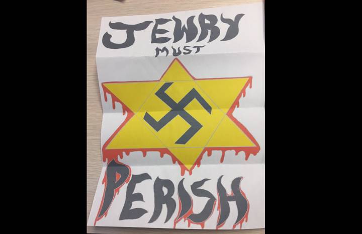 The letter, which strongly resembles Nazi propaganda, contained the phrase “Jewry Must Perish” and was accompanied by a bleeding Star of David with a swastika in its center.