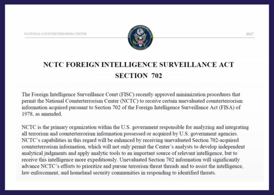 House and Senate committees have passed various versions of what is known as Section 702 of the Foreign Intelligence Surveillance Act. The program permits targeted surveillance on foreign persons located outside the United States.