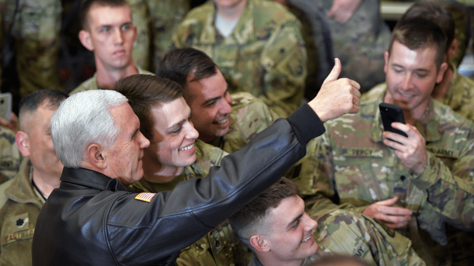 “It’s because of all of you that we’re safe. It’s because of you that we’re free. It’s because of you that freedom has a future in Afghanistan and America and all across the wider world,” Pence said, his voice raspy from a cold.