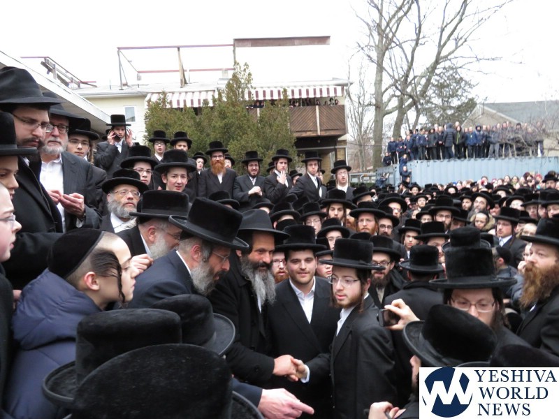 On Friday, Rubashkin visited the Skverer Rebbe in New Square where he met with the Rebbe inside his home. Following the meeting, Rubashkin went outside, as thousands filed past him to shake his hand and wish him well.