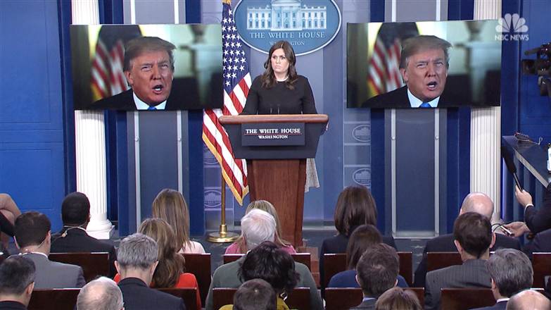 White House press secretary Sarah Huckabee Sanders played a brief recorded video of Trump reading a statement about the tax cut bill he signed into law at the end of December.
