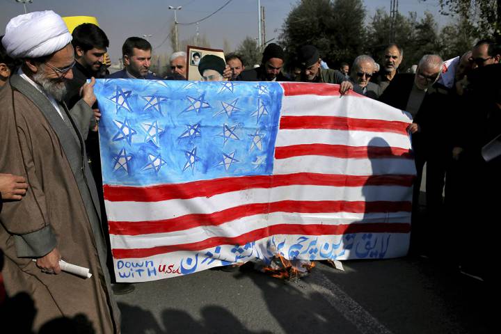 Iran’s state TV on Saturday showed government supporters rallying a day after the foreign minister said a U.S. move to call an emergency U.N. Security Council meeting to discuss anti-government protests was another Trump administration “blunder.”