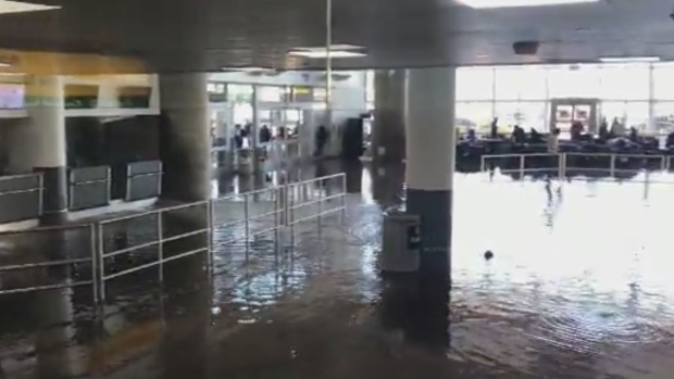 Then, around 2 p.m. Sunday, a water pipe broke , sending about 3 inches (8 cm) of water gushing onto the floor of JFK’s Terminal 4, forcing the airport to suspend its international flight arrivals for a few hours.