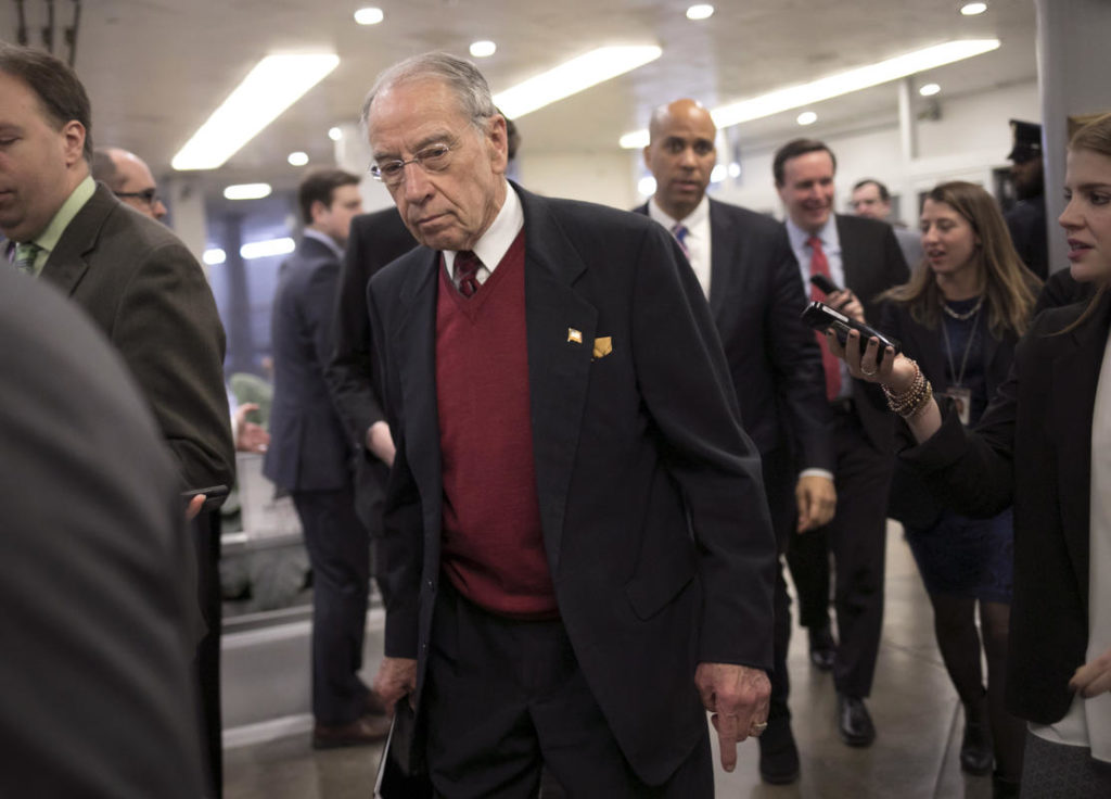 The Senate Judiciary Committee is finishing its investigation into a June 2016 meeting between Russians and President Donald Trump’s campaign, and the Republican chairman of that panel says he wants to release transcripts from closed-door interviews with Trump’s son and others.