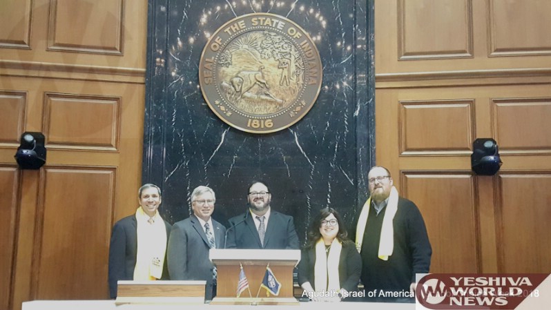 In Colorado, Agudath Israel’s chairman Rabbi Yossi Kaplan, along with several community leaders, used the opportunity of a different event held at the statehouse to meet with legislators and educate them about NSCW.