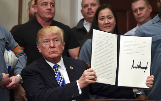 At the White House, an upbeat Trump chatted with the steelworkers, invited them to the Oval Office and autographed a hard hat. He invited some of the workers to speak from the presidential podium, and several said that excessive “dumping” of foreign steel and aluminum had negatively affected their jobs and families.
