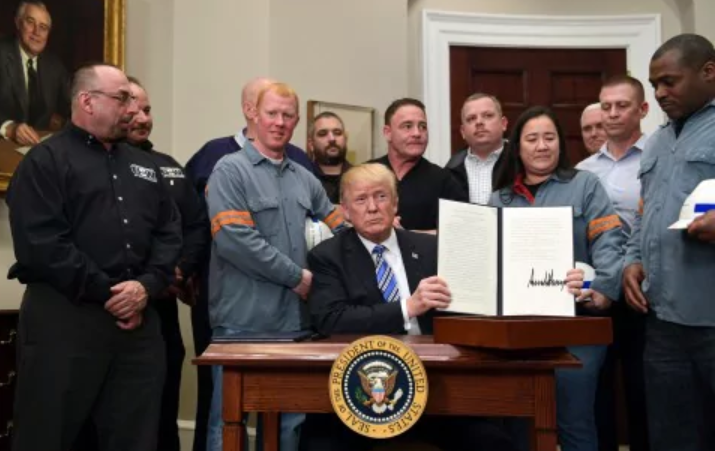 “The American aluminum and steel industry has been ravaged by aggressive foreign trade practices,” Trump declared at a White House ceremony, surrounded by steel and aluminum workers holding white hard hats. “It’s really an assault on our country.”