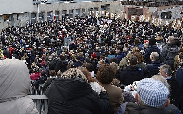 Speakers at the demonstration denounced policies of the current Polish government that have led to a dispute with Israel and sparked a wave of anti-Semitic rhetoric.
