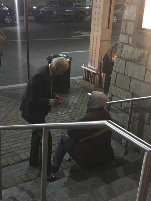 The photo was taken Thursday evening by Caleb Baca. He tells WTTG-TV he’s not sure what Biden gave the homeless man, but he appeared to write something down on a piece of paper inside the movie theater, which he then proceeded to give the homeless man outside.