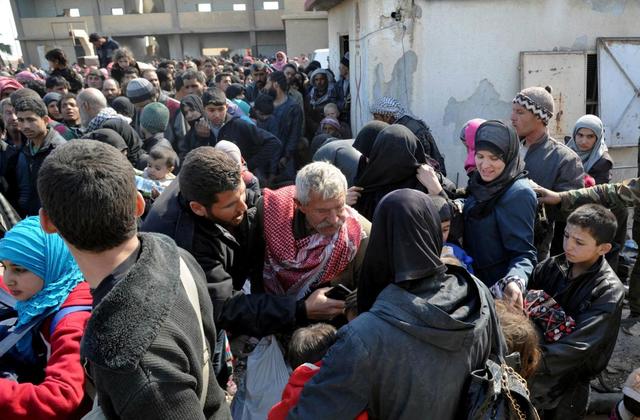 Exhausted and shell-shocked civilians streamed out of eastern Ghouta for the second consecutive day heading to buses arranged by the government to transport them to a center for identification and relief.