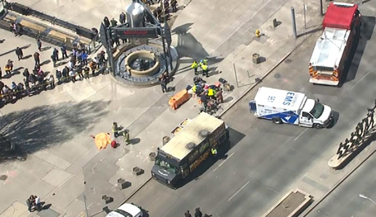 The driver was heading south on busy Yonge Street around 1:30 p.m. and the streets were crowded with people enjoying an unseasonably warm day when the van jumped onto the sidewalk.