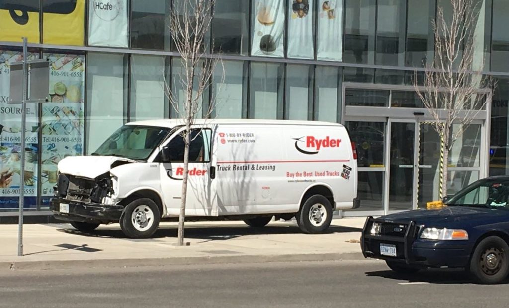 Video shown on several Canadian outlets showed police arresting the driver, dressed in dark clothes, after officers surrounded him and his rental Ryder van several blocks from where the incident occurred in north Toronto. He appeared to make some sort of gesture at the police with an object in his hand just before they ordered him to lie down on the ground and took him away.