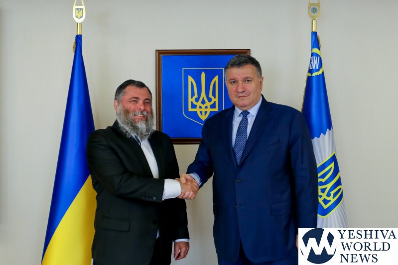 On Monday, 22 Iyar, Ukrainian Minister of Internal Affairs Arsen Avakov met with Rabbi Jonathan Markowitz, Chief Rabbi of Kiev, in the Ministry offices. Avakov orchestrated the meeting following a vicious wave of blatant anti-Semitic incidents in Ukraine which has become serious cause for concern among Jews in Ukraine, and specifically in capital Kiev. Tensions have been building up to the point that last week, in a protest staged in Odessa, extremist “Right Sector” leader Tatiana Soykina called publicly for the expulsion of Jews from the country.