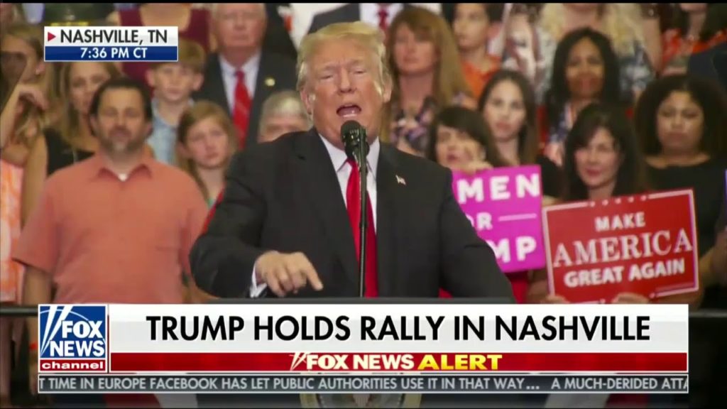 He spoke Tuesday in Tennessee for a campaign rally to boost Republican Senate candidate Marsha Blackburn.