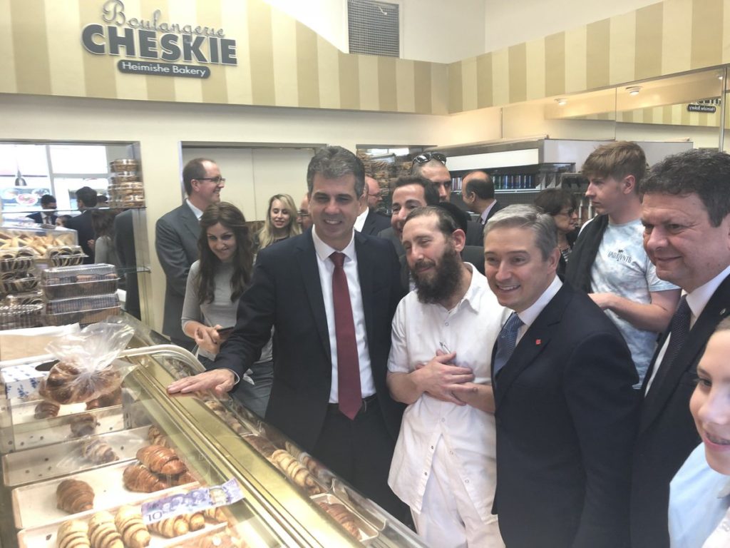 François-Phillippe Champagne, Canada’s Minister of International Trade, and Eli Cohen, Israel’s Minister of the Economy and Industry, toured several businesses in Montreal on Monday, including a Jewish-owned bakery, Cheskie’s.