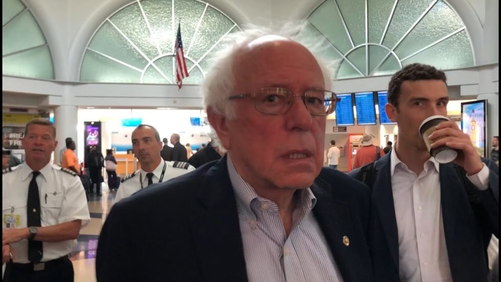 “Well if it isn’t old Bernie Sanders,” said Jones as he caught the liberal Vermont senator walking through the airport, pushing his camera close to his face.