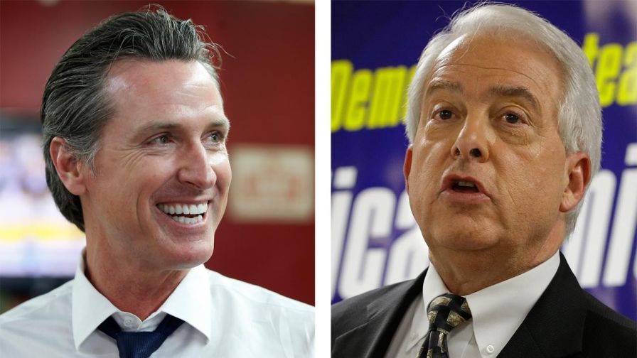 “We’re engaged in an epic battle, and it looks like voters will have a real choice this November — between a governor who is going to stand up against Donald Trump and a foot solider in his war on California,” Newsom told supporters.