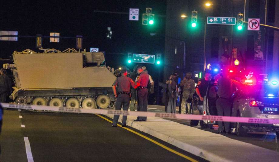 The armored personnel carrier, which drives on tracks like a tank, topped out at speeds of about 45 mph (70 kph) on its journey to the state capital. Police couldn’t stop it, so they ended up escorting it, sirens blaring, before Yabut stopped and got out near City Hall.