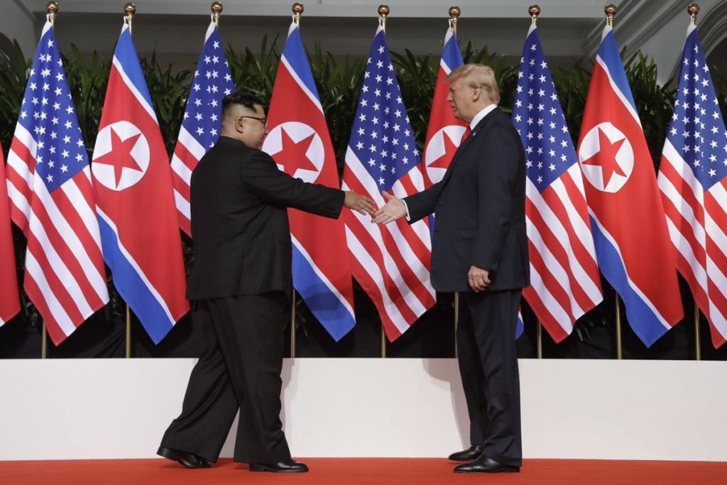 Donald Trump approached from the right, striding down the long portico at the colonial-era Singapore resort. Kim Jong Un, dressed in his familiar Mao suit, emerged from the left. They met in the middle, on a red carpet, dozens of cameras recording their every move as the world watched.