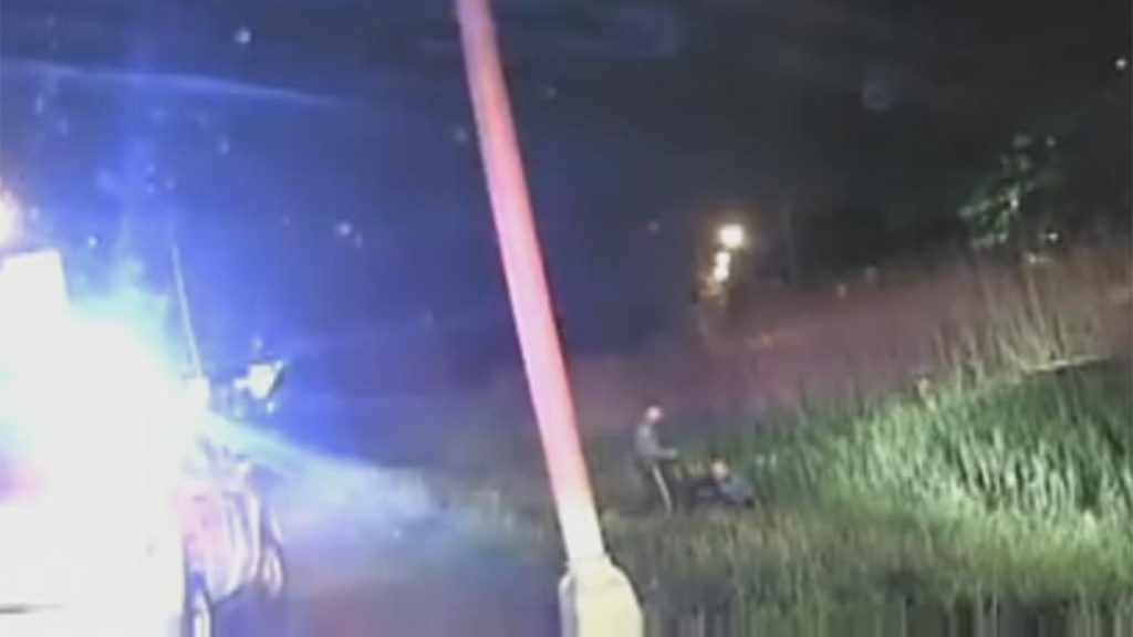 The troopers are heard telling the woman “stay with us.” Another trooper told the others “I got a pulse. Keep going.”