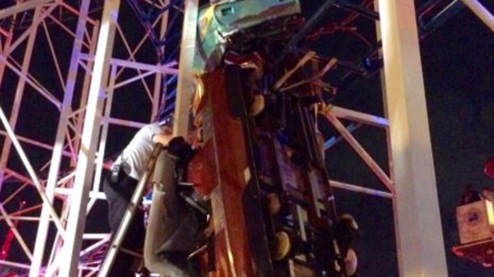 As some people warned those passengers not to move before rescuers arrived, Campbell said a ride worker grabbed a ladder to help the injured who were hanging above the ground. Firefighters climbed up to rescue them as well as six other passengers in two cars that were still on the track.