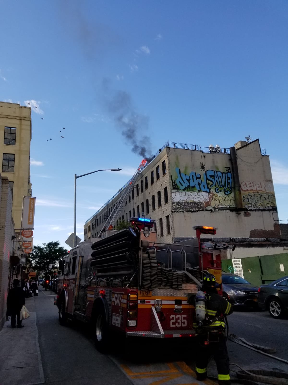 The fire, on the roof of a multi-family building on Spencer and Willoughby Streets, was quickly brought under control.