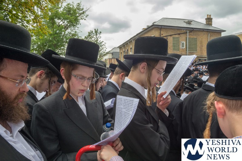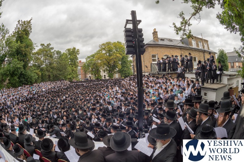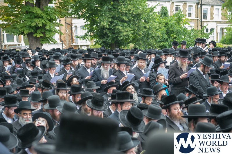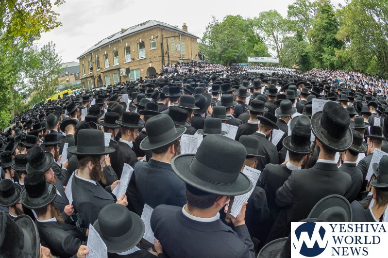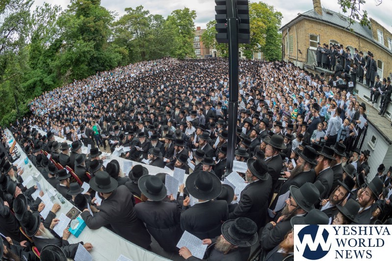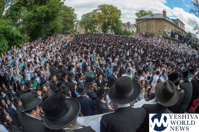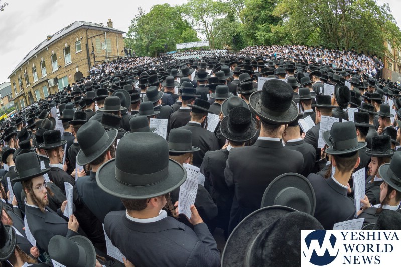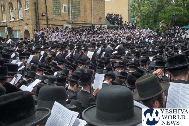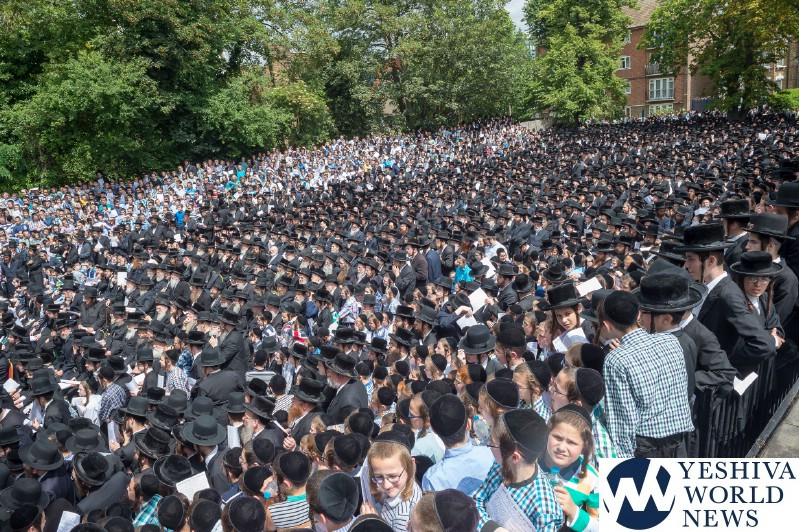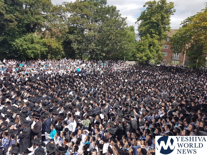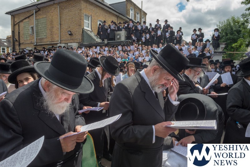 Approximately 7,000 Chareidi Jews gathered in Stamford Hill on Tuesday afternoon, to participate in a Yom Tefillah against the harsh threats targeting Chinuch in yeshivos. The massive event was held outside Bais Hamedrash Toras Eitz Chaim on Lordship Road.