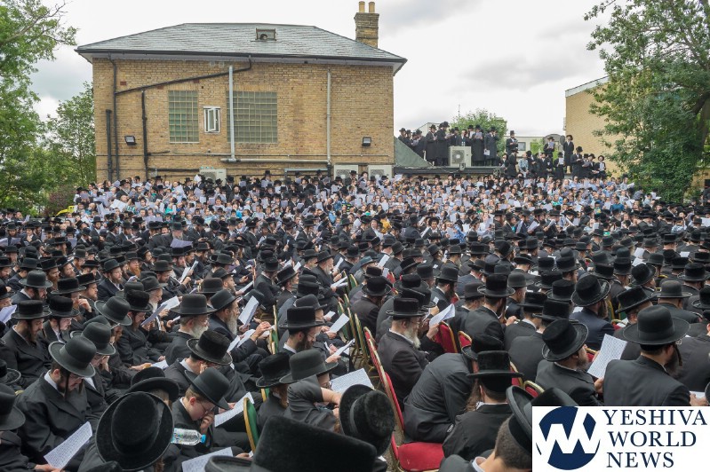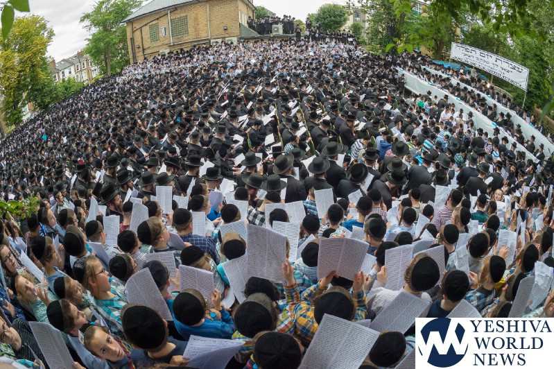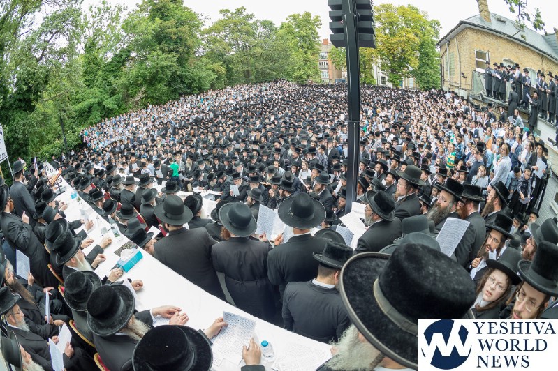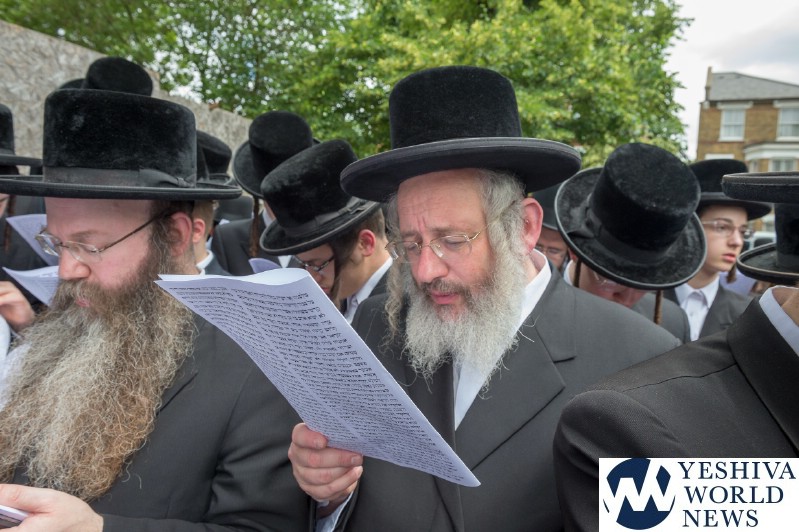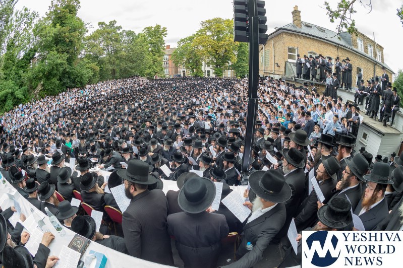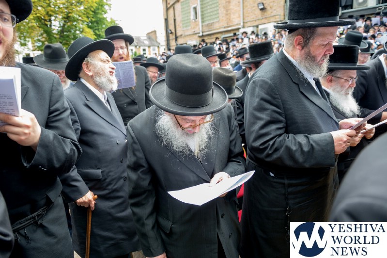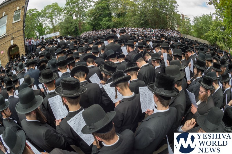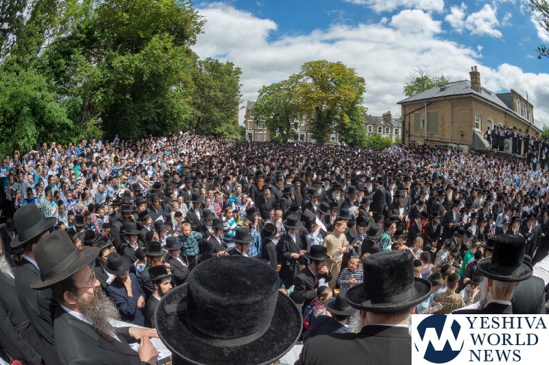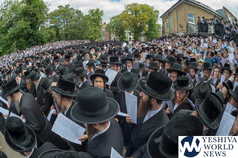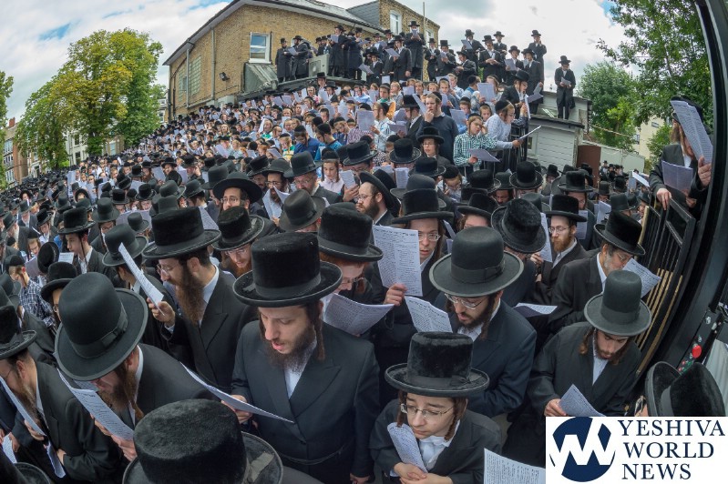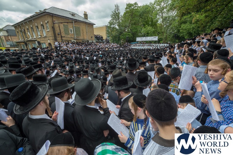 Approximately 7,000 Chareidi Jews gathered in Stamford Hill on Tuesday afternoon, to participate in a Yom Tefillah against the harsh threats targeting Chinuch in yeshivos. The massive event was held outside Bais Hamedrash Toras Eitz Chaim on Lordship Road.
